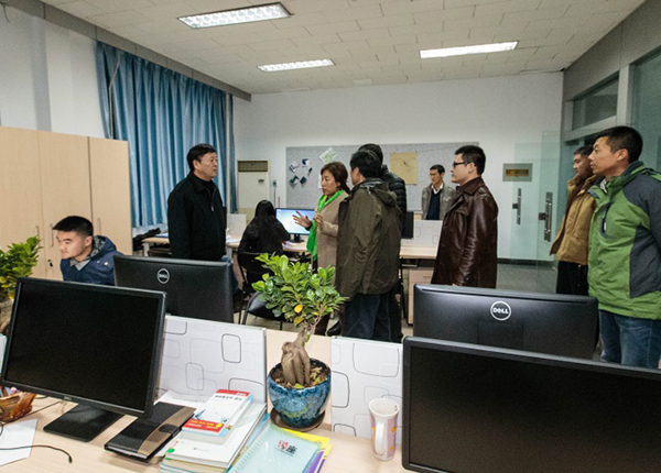 调研会后,石恒真校长、陈江风副校长现场查看了校园网运行监控中心、中心机房、课程制作中心、大学生媒体工作室等。校领导与工作室的大学生亲切交流,了解学生在工作室的学习工作情况,鼓励同学们充分利用学校提供的创新实践平台,多学习多实践多提高。校领导还观看了学校新制作的宣传片,并勉励现代教育技术中心工作人员要继续学习、不断创新,克服人员紧缺的困难,为学校的发展贡献力量。