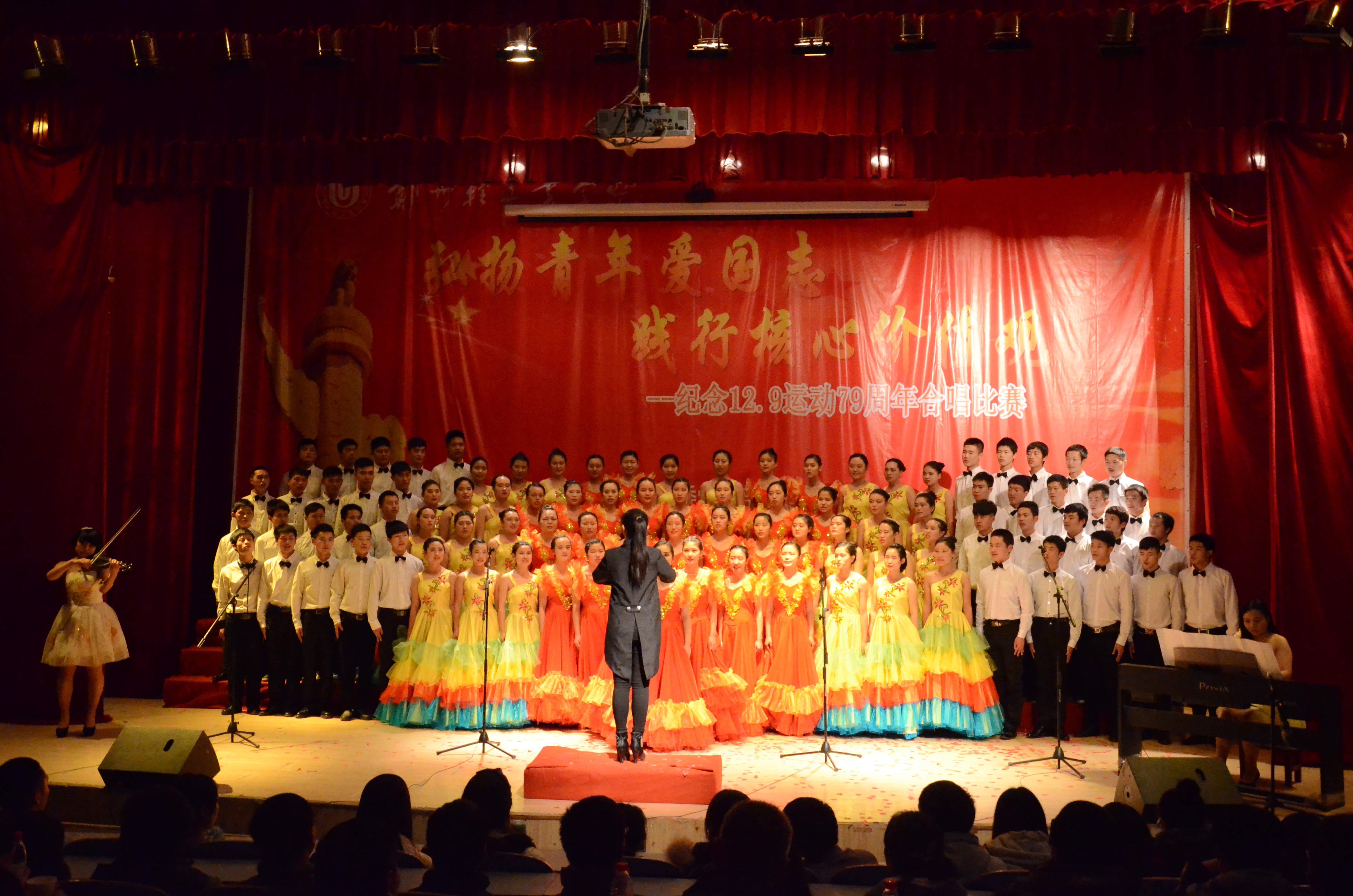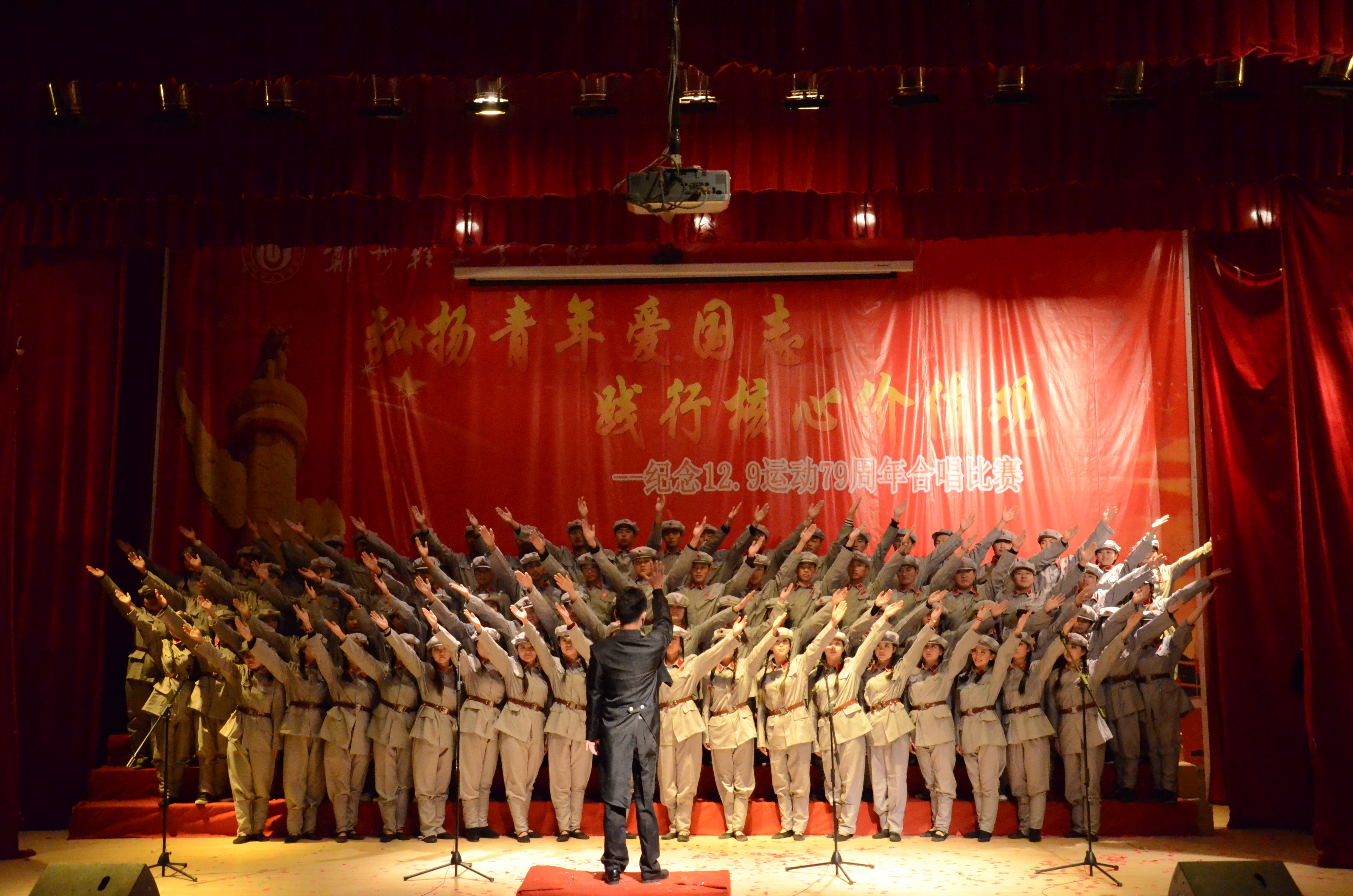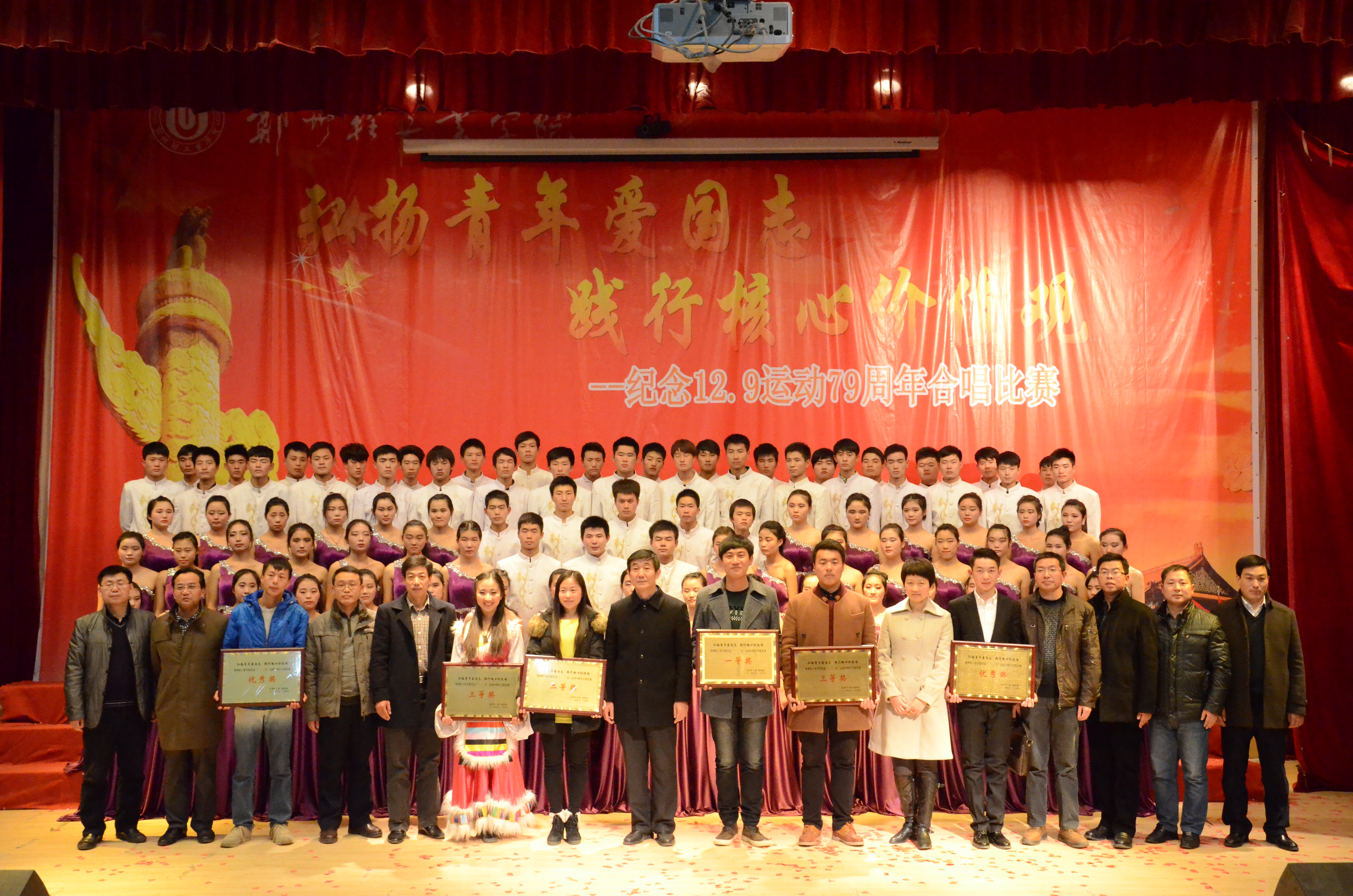 12月4日,我校纪念“一二•九”运动79周年合唱比赛分别在东风校区教一楼107和科学校区三教楼208举行。党委副书记窦效民教授出席并为获奖单位颁发奖牌,党委学工部、团委等部门负责人及院(系)师生观看了比赛。此次比赛由党委学工部、校团委主办,全校16个院(系)的代表队近2600人参与和观看了比赛。