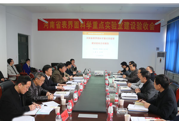3月24日,河南省科技厅组织专家对我校组建的河南省表界面科学重点实验室进行了检查验收。省科技厅基础研究处郭遂臣处长、胡根生调研员、王振亚等出席了验收汇报会。我校石恒真校长、龚毅副校长、吕彦力副校长,设备处、科技处、研究生处等部门负责人,河南省表界面科学重点实验室相关负责人以及学术带头人、学术骨干参加了验收会。