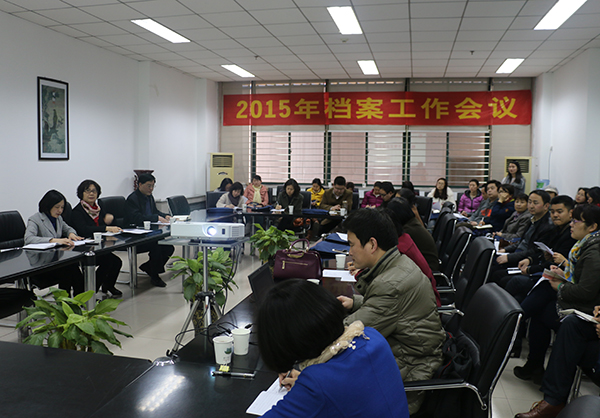 档案馆馆长蔡丽萍首先就2014年档案工作总结和2015年档案工作安排做了详细汇报。档案馆技术编研室杨朝钦主任现场通过校园网演示了网上公开档案资料的查询方法。兼职档案员代表胡萍老师和郑远老师在会上分享了对档案工作的认识、档案收集和整理工作中的经验与做法。