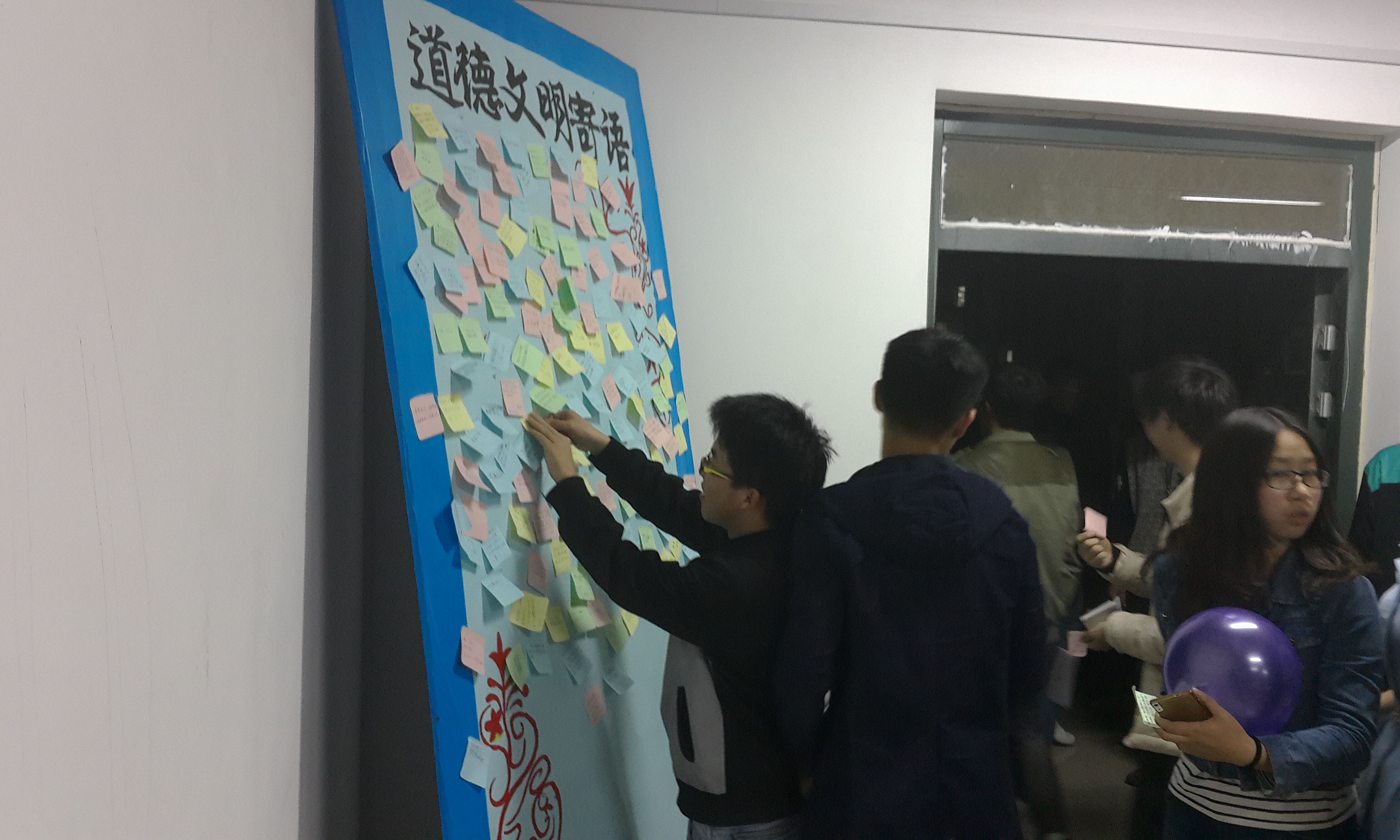 活动进行过程中,利用微博互动平台,场外和场内的同学积极参与,反响热烈。大家纷纷表示,道德就要从你我做起,从平时做起,从关心周围的人做起,努力做一个优秀道德的自觉践行者和积极传播者。