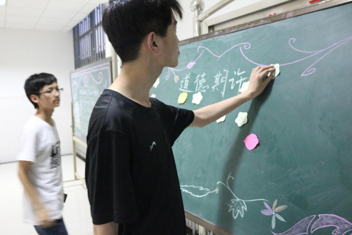 讲堂活动上,大家在《好人就在身边》的歌声中进行了关于道德的交流讨论,写下了参与此次活动的感想,并在离场时亲手贴到了宣传板上。活动结束,同学们还互赠写有经典道德箴言的书签以共勉。
