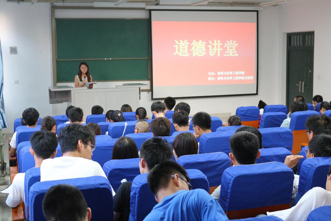 近日,由学校文明办主办、材料与化学工程学院承办的“道德讲堂”在科学校区化工楼218和二教楼708教室举行了两场活动。活动以“凝聚道德新风尚,传递青春正能量”为主题,化工学院教师、学生代表300余人参加了活动。