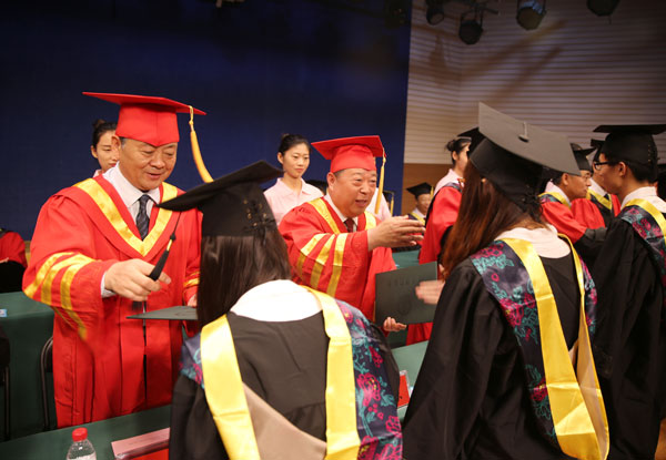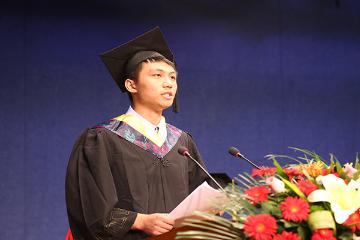 赵校长表示,即将离别之际,我代表所有师长将满腔的眷恋和希冀化作四句话送给你们:第一,希望你们志存高远、敢于担当。今天的你们比当年的我们更有思想,更有才华,更有朝气。希望你们满怀信心、努力奋斗,成为一个勇担重任的人,为国家的繁荣昌盛,为中华民族的伟大复兴,贡献自己的一份力量。第二,希望你们崇尚真理、做人为先。始终保持诚实做人、踏实做事、追求真理的人生态度,摒弃浮躁、虚假、急功近利和随波逐流等不良倾向,严谨务实、上下求索。第三,希望你们终身学习、勇于创新。永远保持学习和创新的热情,不断探求新知,发现新事物,探索新事物,引领新事物,树立梦想从学习开始、事业靠创新成就的观念,让勤奋学习成为青春远航的原动力,让勇于创新成为青春搏击的正能量。第四,希望你们至爱宽容、豁达自律。以豁达的心态直面人生的高潮与低谷,以宽容的性情对待人生的失落与坎坷,积极自信地去成就有意义、有价值、有创造的未来。
