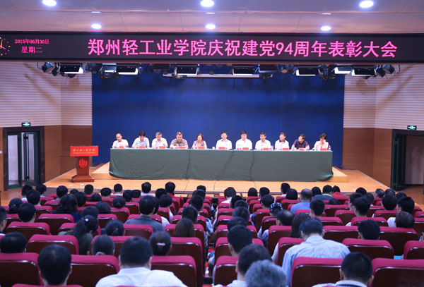 6月30日下午,我校在东风校区教一楼演讲厅隆重举行庆祝建党94周年表彰大会,纪念伟大的中国共产党成立94周年,表彰2013-2015学年在学校改革、建设和发展工作中涌现出来的先进基层党组织、优秀共产党员和优秀党务工作者。全体在郑校领导、全体中层党员干部、党总支书记、党支部书记、教工党员代表、离退休党员代表、学生党员代表以及受表彰的先进集体和先进个人参加了大会。大会由校长赵卫东同志主持。