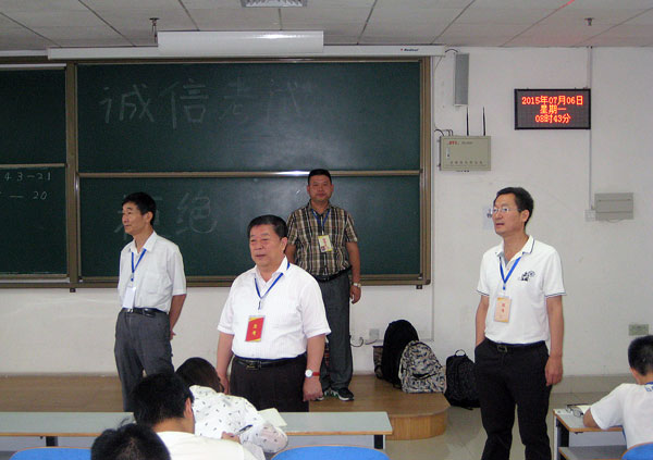 为进一步强化考风建设、稳定教学秩序、提高教学质量,教务处在考试前召开了专门会议,认真部署了期末考试工作。各院(系)通过横幅、宣传板、考前动员会等多种形式,面向本单位学生开展了诚信教育,并对监巡考教师进行了集中培训。后勤服务部门根据考试工作需要,对两校区教室设施、环境卫生等方面做了充分的准备。