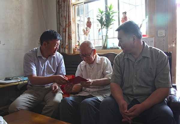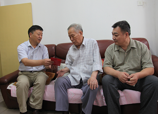 在老同志家中,校领导与他们促膝交谈,仔细聆听了老同志回忆的那段艰苦卓绝的战斗岁月,关切地询问了他们的生活起居、家庭、身体健康等状况,看到老同志们精神矍铄,校领导感到十分高兴。校领导表示,抗战老兵为民族解放出生入死,功勋卓著,在他们身上体现了中国人民不屈不挠、保家卫国、反抗侵略的民族精神,值得我们崇敬和学习。校领导希望老同志保重身体,继续为学校的建设和发展献计献策。老同志们表示,感谢党组织的关怀和关心,并祝愿学校发展越来越好!