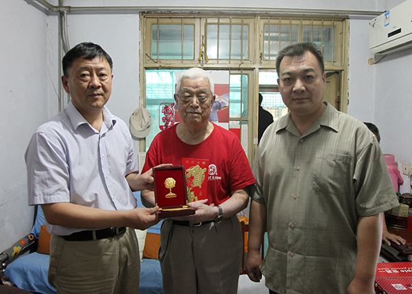 9月2日,在中国人民抗日战争暨世界反法西斯战争胜利70周年纪念日到来之际,我校党委书记石恒真、校长赵卫东、党委副书记尚宝平、副校长毛多斌代表学校,专程到抗战时期参加革命工作的齐秀山、刘振亚、翟玉梅、张义峰、马安功等我校离休老干部家中进行走访慰问,为他们送上慰问品和慰问金,颁发了中共中央、国务院、中央军委制作的“中国人民抗日战争胜利70周年”纪念章,并对他们在抗战期间,为民族解放独立做出的贡献表示崇高敬意。党委办公室、党委组织部、党委宣传部、离退休职工工作处等相关部门负责同志的陪同慰问。