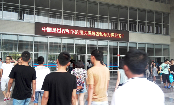 连日来,党委宣传部充分运用校园网主页、校园广播、校报、学校官方微博、微信公众号等媒体平台,以及LED电子屏、宣传橱窗、宣传条幅等宣传形式,积极营造隆重纪念中国人民抗日战争胜利暨世界反法西斯战争胜利70周年的宣传氛围。