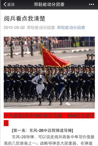 3日上午,学院组织教工、研究生、本科生党员、入党积极分子在东一楼300集体收看阅兵式现场直播,鼓励动员同学们通过手机、电脑在宿舍、教室收看阅兵实况,并通过微博互动实时发布观后感。当震撼人心的礼炮响起,全体师生肃然起立,当鼓舞士气的国歌奏响,在场师生集体高唱,大家热情高涨,心潮澎湃,共同期待和见证这庄严的时刻。当看到我们的人民解放军将士英姿勃发,斗志昂扬,当看到我们的装备先进,武器强大,大家不禁掌声阵阵。阅兵仪式向世界展示了我们国家的强大、军人的强悍、科技的先进,同时也表达了我们爱好和平的愿望。