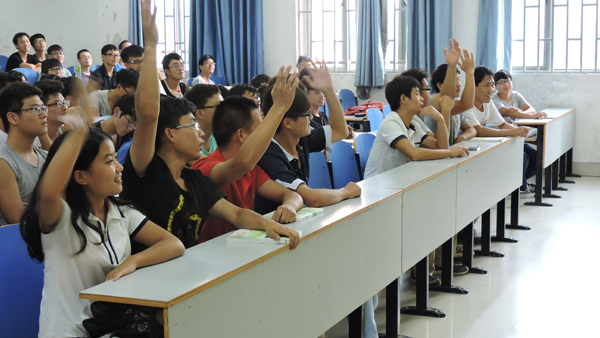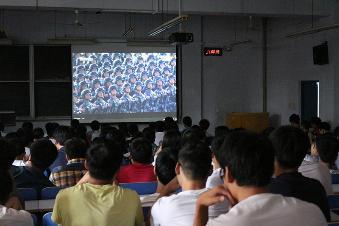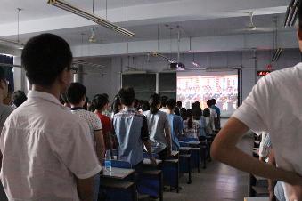 上午8:30,阅兵式还未正式开始,两间教室就已座无虚席,后排还有不少同学站立观看。上午10时,抗战胜利70周年阅兵式正式开始,领队机梯队悬挂国旗和军旗飞过天安门,八道彩烟绚丽夺目;抗战老同志方队,主要有抗战老兵以及抗日英烈子女,抗战老兵,浩气长存,祖国和人民永远不会忘记他们;徒步方队,包括三军仪仗队以及10个英模部队方队,庄严肃穆的军容、铿锵有力的步伐、英武雄壮的气势赢得了大家的阵阵欢呼;装备方队,精良的各式武器装备令人震撼不已;空中方队,鹰击长空,气冲霄汉,不少同学儿时便植根在心底的飞行梦再次被点燃。