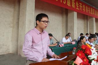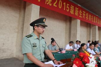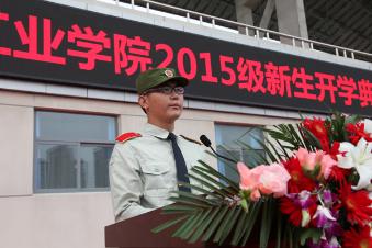 校长赵卫东教授发表了热情洋溢的讲话。赵校长首先代表全校师生员工向2015级新同学表示热烈欢迎,向长期以来大力支持我校学生军训工作的71834部队官兵表示诚挚感谢。赵校长从四个方面向新同学们介绍了郑州轻工业学院——既“小巧精致”又“规模宏大”,既“朝气蓬勃”又“学术厚重”,既“朴实无华”又“特色鲜明”,既“服务地方”又“面向世界”。他告诉新同学,“为之则易 不为则难”是我们的校训,在校训精神的激励下,历代轻院人艰苦奋斗、创业图强、负重致远、薪火相传。