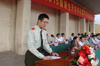 承训部队首长在军训动员大会上做了表态发言,表示将严格组训、科学施训,高标准圆满完成军训任务,不辜负郑州轻工业学院的信任和重托,并希望同学们在军训生活中砥砺意志品质,强化国防观念,提高军事素质。