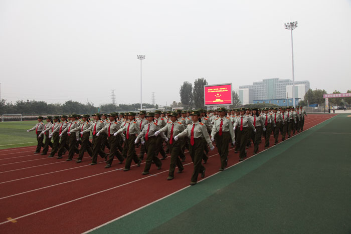 校领导石恒真、赵卫东、张胜利、窦效民、尚宝平、安士伟、王新杰、李世瑛,承训部队首长,相关职能部门和各院系负责同志参加大会并观看新生军训成果汇报。