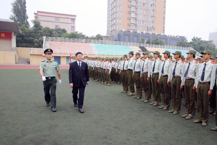 校党委书记石恒真、校长赵卫东分别在两校区出席活动,并在承训部队首长的陪同下检阅了新生军训方队。