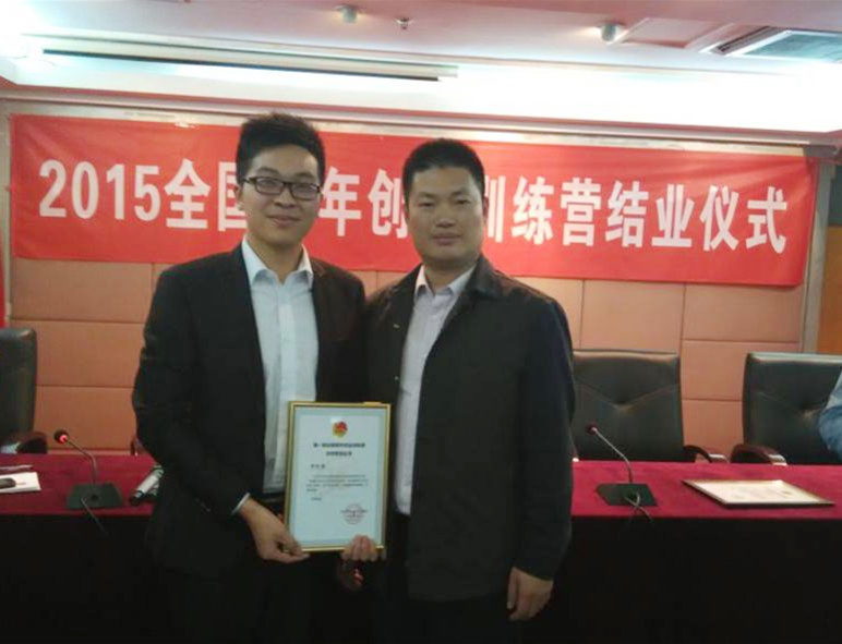 李世海同学(左)荣获“第一届全国青年创业训练营优秀营员”