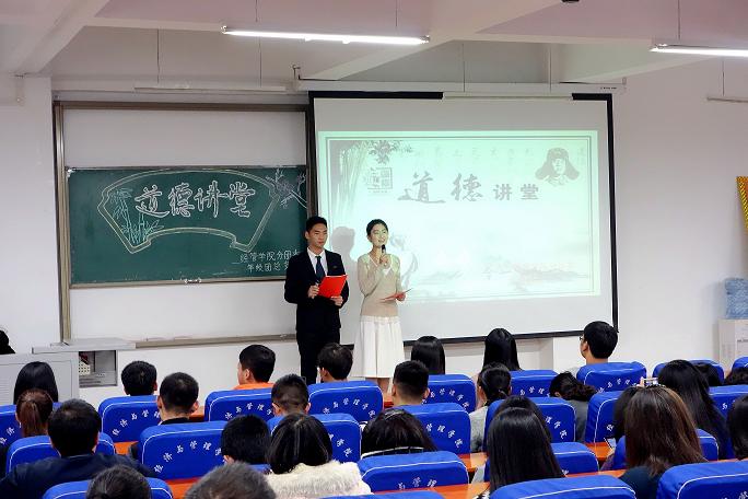 日前,为进一步提高当代大学生的思想道德修养,激发广大青年学生的爱国热情,增强同学们的社会责任感和使命感,郑州轻工业学院“道德讲堂”走进经济与管理学院,在科学校区经管楼309开展了活动。