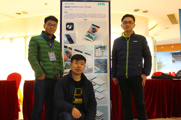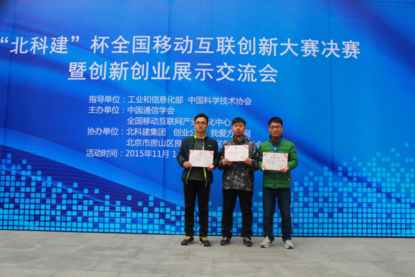 11月14日至16日,2015全国移动互联创新大赛在北京中关村圆满进行。我校马照瑞老师指导、国际教育学院网络工程13-03班汪想、胡浩冉和电子商务13-05班侯森三位同学组成的大学生IT创新工作室团队表现出众,勇夺高校软件组一等奖。