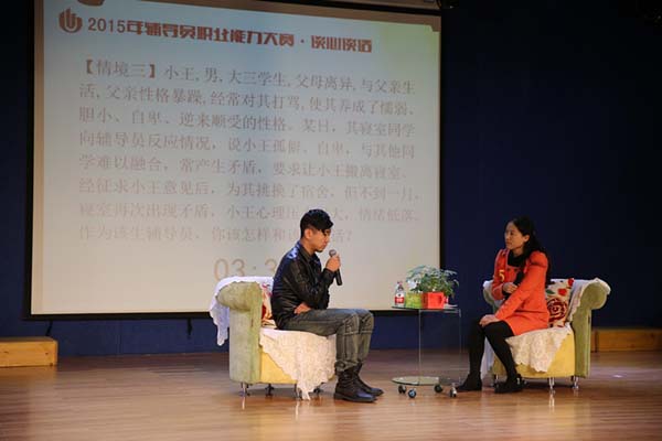 11月27日下午,我校第三届辅导员职业能力大赛决赛在东风校区演讲厅举行。校党委副书记窦效民出席并观看了参赛辅导员的比赛情况。各学院专兼职辅导员和部分学生代表300余人到场观摩