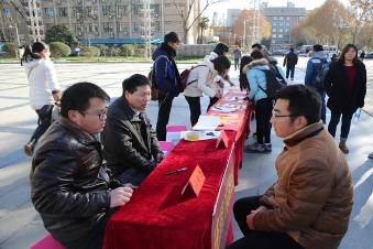 12月3日,“国家宪法日”前夕,学校在东风路校区开展了法律咨询、法律宣传及签名活动,政法学院汤富强、杨永华两位老师为校内师生提供了义务法律咨询和法律援助,校大学生法律援助中心的同学为师生发放了贴近师生学习、工作实际的法律知识宣传页。活动现场,陆续有师生在“和谐与文明同在 法治与发展共存”的横幅上签下自己的名字,表达对于依法治国理念和“依法治校年”活动的衷心认同。