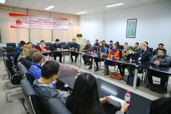 12月28日上午,我校主办2015国际学生“中国文化体验之旅”冬令营开营式在东风校区第三会议室举行。副校长毛多斌出席开营式并致辞。国际合作与交流处、教务处、学生处、艺术设计学院等单位的负责同志与来自德国、美国、英国、韩国、马来西亚等国家的17位国际学生参加了开营式。