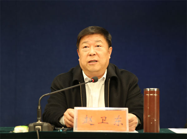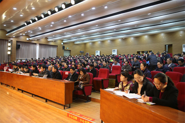 校长赵卫东在会上讲话。他从开展“三严三实”专题教育、完成中层干部换届、实现国家科技奖和科研项目突破、新增省协同创新中心和特色学科群、人才队伍建设成效显著、实现一本招生、成为就业50强高校、“双创”和学科竞赛屡获佳绩、成功创建省级文明单位、学校《章程》颁布实施、办学空间进一步拓展等方面简要回顾了2015年学校工作。并代表学校党政领导班子安排部署了2016年的重点工作:一是深入学习,巩固成果,持续加强学校党的建设;二是突出重点,抓住关键,谋划学校长远发展;三是深化教改,注重实践,提高人才培养质量;四是加强建设,彰显特色,增强学科科研实力;五是完善制度,引培并重,提升人才队伍建设水平;六是德育为先,全面育人,促进大学生成长成才;七是围绕中心,服务大局,不断改善办学条件;八是以人为本,关注民生,切实做好和谐校园建设。