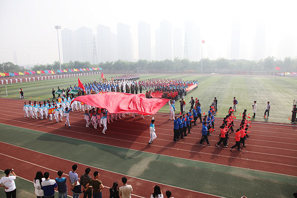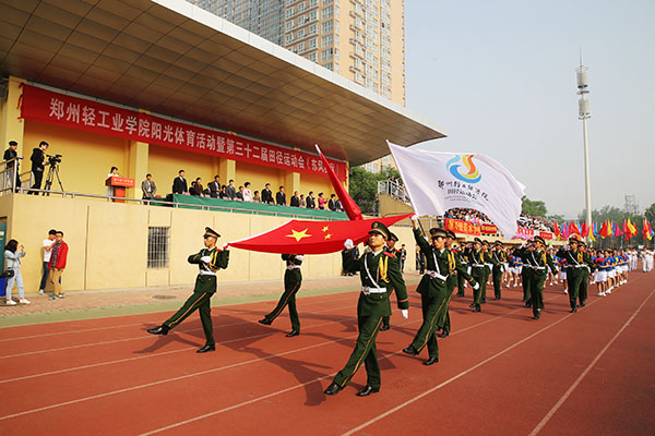 随着党委书记石恒真在东风校区、校长赵卫东在科学校区宣布“郑州轻工业学院阳光体育活动暨第32届田径运动会开幕式正式开始”,运动会开幕式在雄壮的国歌声中正式拉开帷幕。