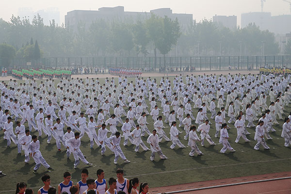 音乐再次响起,学生太极拳表演、教工八段锦表演、学生健身操表演等团体表演纷纷亮相,3000余名教职工生参加活动,参与师生的精彩表演赢得了现场观众的热烈掌声和欢呼声,集中展现了我校开展阳光体育活动的成果。整场开幕式振奋人心、催人奋进,为下一步的比赛鼓足了劲,开好了头。