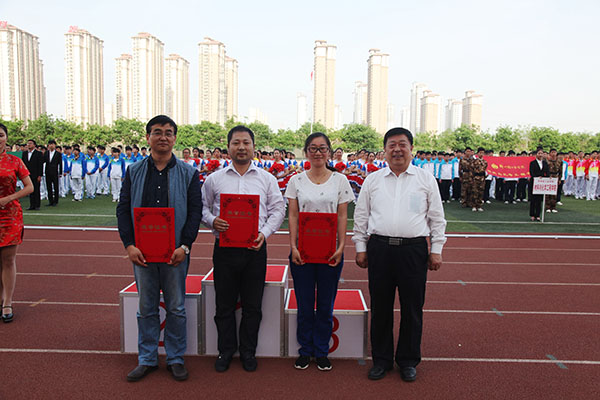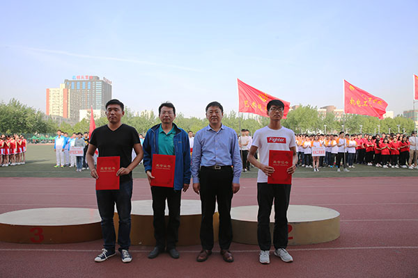 闭幕式上,校领导为运动会各项比赛及阳光体育活动获奖单位颁奖并表示祝贺。
