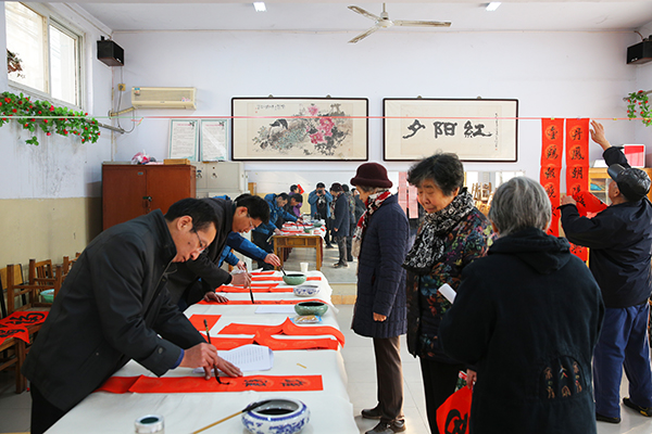 爆竹声声辞旧岁,总把新桃换旧符。日前,为迎接新春佳节,弘扬传统文化,营造欢乐祥和的节日氛围,丰富广大教职工的寒假生活,由我校离退休职工工作处、艺术设计学院、轻院书画协会联合举办的“写春联 送祝福”活动在离退休职工工作处成功举行。