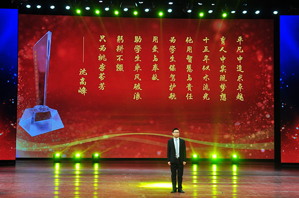 此次会议共颁发4个奖项,包含1个致敬环节。我校艺术设计学院辅导员张莉主持的《民艺美育坊》获河南省高校辅导员工作精品项目奖,并作为获奖代表上台领奖。在向代表河南省参加第一至五届全国高校辅导员职业能力大赛获奖选手致敬环节中,我校辅导员万慧杰、常亮作为代表上台接受表彰,并与全国辅导员工作研究会领导合影留念。在第六届河南省高校辅导员职业能力大赛优秀组织单位和选手颁奖环节中,我校食品与生物工程学院辅导员王楠获大赛一等奖,学校获大赛“优秀组织奖”。河南省第三届高校辅导员年度人物颁奖典礼现场播放了我校计算机与通信工程学院辅导员沈高峰的事迹短片,并宣读了组委会授予的颁奖词。省委高校工委专职副书记、省教育厅党组副书记郑邦山亲自沈高峰同志颁发年度人物大奖