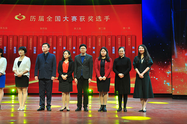 万慧杰、常亮在河南省历届国赛获奖选手致敬环节中接受表彰