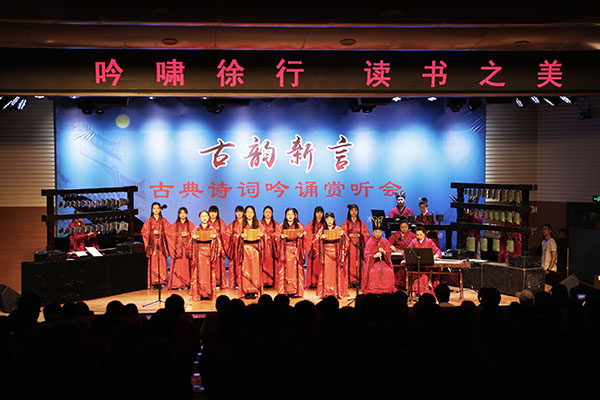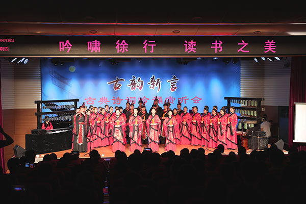 4月20日,郑州轻工业学院、河南师范大学新联学院和河南博物院华夏古乐团共同在轻院东风校区举办“古典诗词吟诵赏听会”,通过华调和字调吟诵的形式,让当代大学生重温了文学经典的永恒之美。