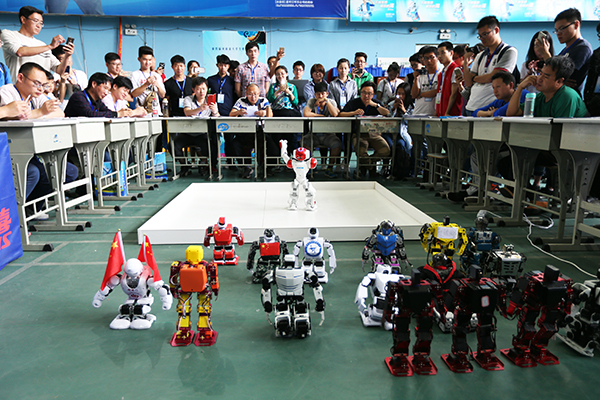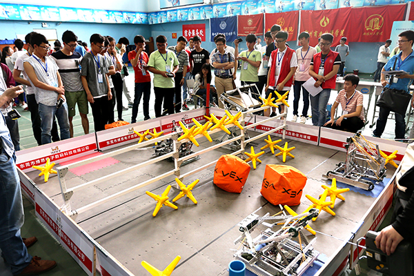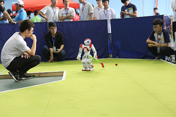 根据大赛规则及要求,大赛分为机器人武术擂台赛、微软机器人仿真赛、机器人游河南赛、机器人竞步比赛、机器人舞蹈(人形)赛、机器人灭火、机器人创新设计比赛、机器人工程挑战赛、VEX-U机器人挑战赛、工业机器人专项赛、机器人走迷宫比赛、机器人高尔夫比赛等共计12大项、31小项。来自各高校的参赛队伍在志愿者及工作人员的服务与指引下,按照大赛流程及规划,紧张而有序地参加各项赛事,向评委及观众带来了“科技与文化交融,传统与智慧交织”的机器人竞赛。大赛吸引了我校近万名师生前往观看,并同各高校选手交谈思路、传递鼓励、表达称赞。大赛共评选出冠军队伍32个,其中,我校获得5项冠军,其余各项桂冠被郑州大学、河南理工大学等高校摘取。此外,郑州大学、河南理工大学、河南科技大学、华北水利水电大学、郑州轻工业学院等十余所高校获得本次大赛的优秀组织奖。