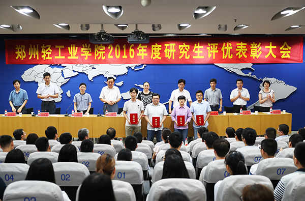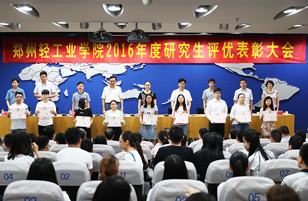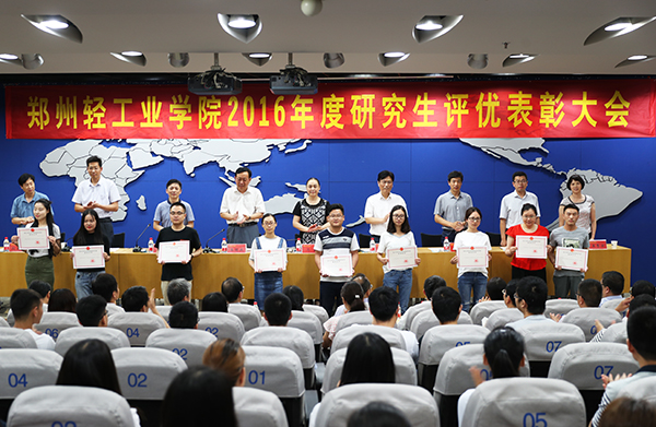 会上,研究生处处长王国庆宣读了《河南省教育厅关于批准2016年河南省优秀博士、硕士学位论文的决定》(教研〔2017〕406号)、《郑州轻工业学院关于表彰2016年研究生国家奖学金、学业奖学金等获得者的决定》(郑轻院学〔2017〕5号)和《郑州轻工业学院关于表彰2017届优秀毕业生的决定》(郑轻院学〔2017〕2号)。大会分别为2016年河南省优秀硕士学位论文获得者及其指导教师,2016年研究生国家奖学金、学业奖学金获得者,研究生科研先进个人,优秀研究生,优秀研究生干部,省部级以上科技竞赛奖获得者和2017届优秀毕业研究生等获奖师生代表进行了表彰颁奖。指导教师代表、获奖研究生代表先后在大会上作了典型发言。
