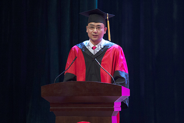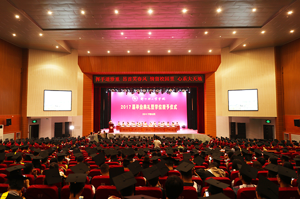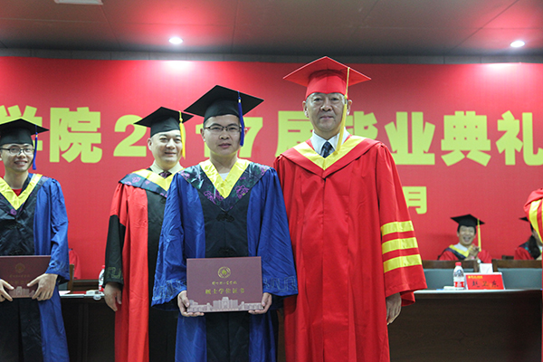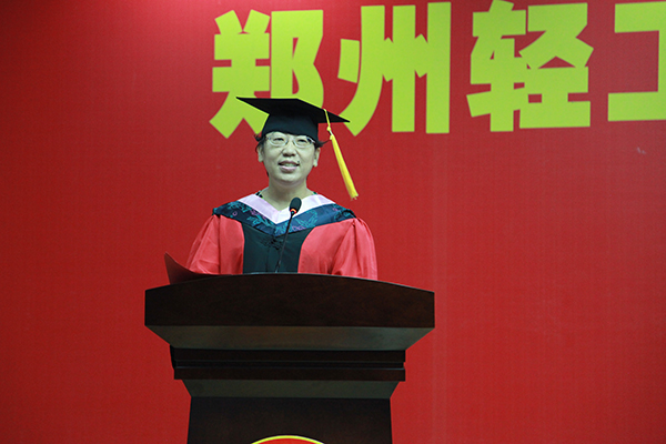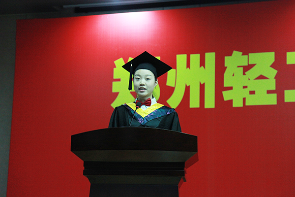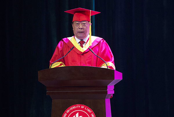 致辞中,赵校长带领大家深情回望了同学们在轻院弥足珍贵的大学时光。在即将离别之际,他代表所有师长将满腔的眷恋和希冀化作四句话作为大学的最后一课送给2017届所有毕业生。一是要志存高远、勇于担当。将理想、价值和才学与国家命运联系起来,矢志不渝、锐意进取,在改革开放和经济发展的浪潮中成就事业,实现人生价值。满怀信心、努力奋斗,成为一个勇担重任的人,为国家的繁荣昌盛,为民族的伟大复兴,贡献自己的一份力量。二是要勤奋学习、开拓创新。在走上社会后,同学们要继续“博学之”,探求新知识,发现新事物,开拓新领域,引领新潮流;要继续“笃行之”,以上下求索、敢为人先的锐气,解放思想、开拓进取的勇气,立足实际,讲求方法,把创新潜能充分发挥出来,潜心在各自从事的领域里作出一番事业,争做一名出彩的“轻院人”。三是要脚踏实地、持之以恒。同学们一定要记住——只有脚踏实地、持之以恒才可能获得成功。同学们要以优秀校友为榜样,脚踏实地,勇于实践,持之以恒,不懈奋斗,书写无愧于时代的壮丽篇章。四是要宽容至爱、豁达自律。走出校园,同学们将扮演不同的角色,经历不同的风景,完成不同的褪变,无论角色如何转变,同学们也一定要热爱祖国,热爱人民,热爱亲人和朋友;珍爱时间,珍爱生命,珍爱工作和生活。要学会淡泊名利,克己自律,时刻铭记饮水思源,常怀感激,懂得报答。要以豁达的心态直面人生的高潮与低谷,以宽容的情怀对待人生的失落与坎坷,积极自信地去成就有意义、有价值、有创造的未来。