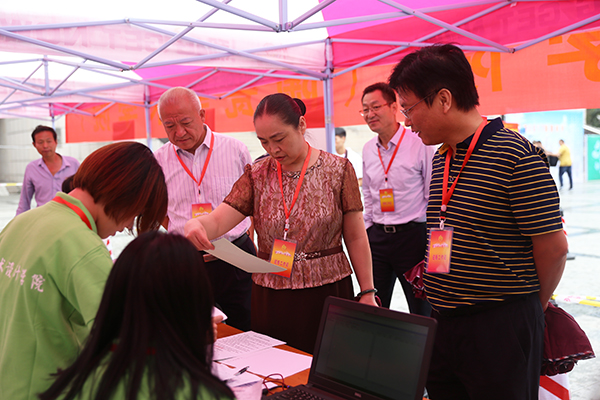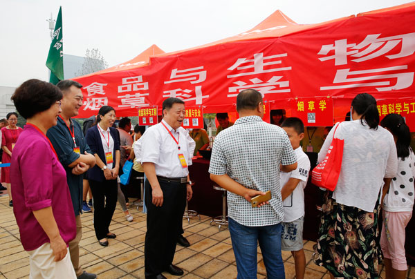 校长赵卫东等校领导在迎新现场与新生家长亲切交谈