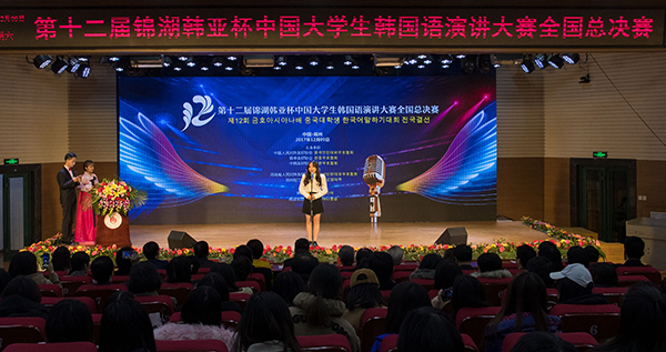 12月9日,由中国人民对外友好协会、中韩友好协会、韩中友好协会联合主办,河南省人民对外友好协会、郑州轻工业学院承办的第十二届锦湖韩亚杯中国大学生韩语演讲大赛全国总决赛在郑州轻工业学院教一楼讲演厅隆重举行。