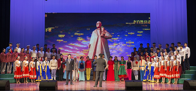 经典的曲目和高超的演艺功底,一次次将晚会推向高潮,台下掌声如潮。参加演出的师生们倾情投入、激情昂扬,在舞台上大放光彩,他们精准地诠释了马可先生作品的音韵铿锵、马可先生风范的山高水长、马可先生的革命英雄主义精神,再现了马可先生音乐作品不愧为中国现代音乐扛鼎之作的魅力!演出结束后,两校领导上台与演职人员一一握手并合影留念,庆祝演出取得圆满成功。