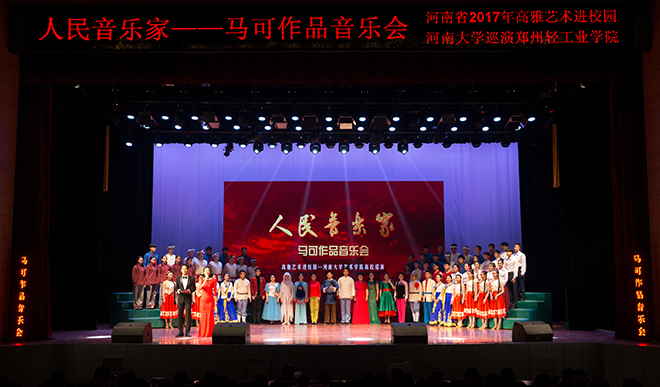 河南大学艺术学院是河南省成立最早的高等艺术学府,音乐类专业历经甲子传承,成为培养中原地区乃至全国音乐人才的摇篮,培养出了一批在全国音乐界、影视界具有一定影响力的专业人才,如小香玉、陈淑敏、李艳秋、陈真、孙伟国等,多数毕业生已成为河南省乃至全国文艺团体、高校艺术教育的骨干力量。 “人民音乐家马可作品音乐会”由河南大学艺术学院创作表演团队搜集整理了马可先生不同历史时期、不同年代的优秀民族音乐作品,经过河南大学艺术学院提炼加工改编,用不同的表演形式打造的一台高水平的丰富多彩的音乐会。2013年12月24日在河南大学大礼堂首演,2014年4月应中国科学院和中国社会科学院邀请,成功连续再演两场;2015年9月应中国音乐学院校庆50周年庆典邀请,为了纪念马可先生,与中国音乐学院共同举办了《中国民族音乐的丰碑——马可作品音乐会》,受到专家的极高评价。(通讯员:阮世敏)