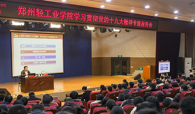 1222日,校长赵卫东教授在东风校区演讲厅作党的十九大精神专题辅导报告。学校各单位教授、博士,相关职能部门负责人共300余人聆听了报告会。报告会由党委副书记马英主持。
