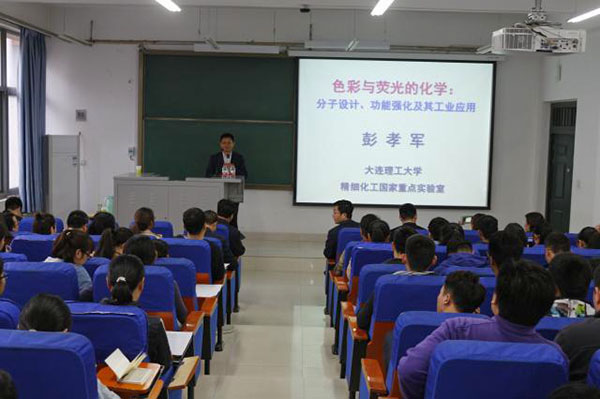 4月13日,应我校材料与化学工程学院、河南省表界面科学重点实验室邀请,大连理工大学教授、国家杰出青年基金获得者、教育部“长江学者”特聘教授、中国科学院彭孝军院士来我校作题为“色彩与荧光的化学:分子设计、功能强化及其工业应用”学术报告。我校材化学院相关专业教师及全体研究生参加了此次报告。
