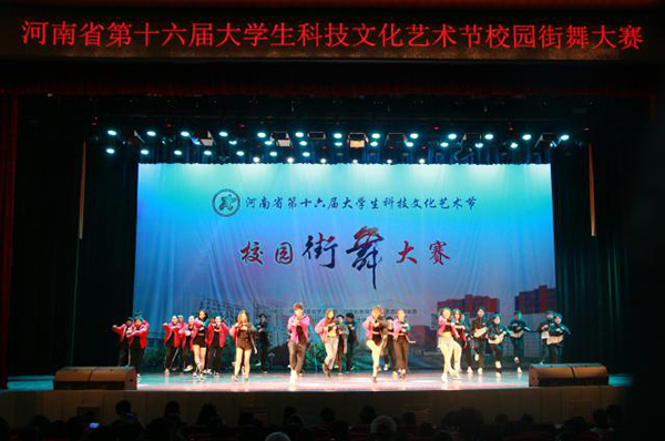 5月11日-13日,由中共河南省委宣传部、共青团河南省委、河南省教育厅、河南省文化厅、河南省学生联合会联合主办,由我校承办的第十六届大学生科技文化艺术节校园街舞大赛在我校东风校区大礼堂隆重举行,包括我校在内的省内72所高校、93个团队、600余名学生汇聚在这里,上演了一场精彩绝伦的街舞盛宴。