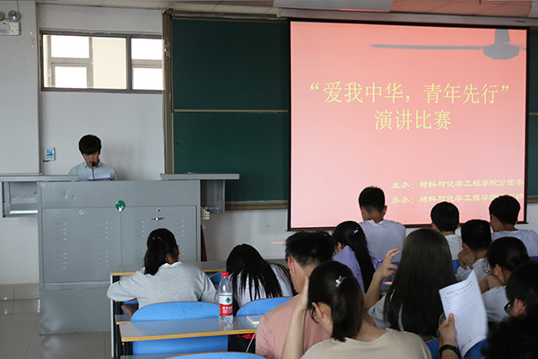 材料与化学工程学院开展的“爱我中华,青年先行”道德主题演讲活动精彩纷呈,13位来自不同班级的同学在演讲中以“五四精神”为主题,抒发青年学子爱国情怀。大家在学习中,明确了当代青年学子理应担负的历史使命和责任,大家深受鼓舞,纷纷表达了继承和发扬革命精神的决心。