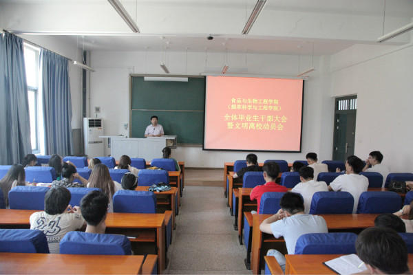 食品与生物工程学院(烟草科学与工程学院),国际教育学院,软件学院,建筑环境工程学院等单位先后召开了毕业生大会暨文明离校动员会。学院领导对毕业生在校期间所取得成绩表示肯定,对毕业生长期理解、支持、配合学校和学院的工作表示感谢;对毕业生派遣、毕业生人事代理相关政策及办理流程等事宜作了详细讲解;对毕业生文明离校教育工作和毕业生离校前的工作任务作了系统安排;希望毕业生走入工作岗位后积极进取,奋勇拼搏,取得突出成绩,为母校增光添彩。