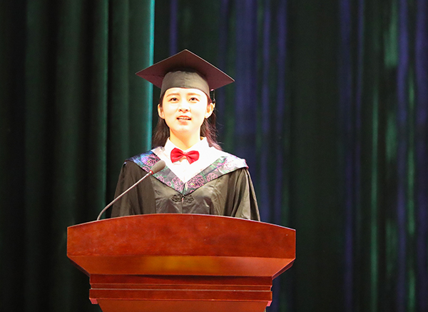 他表示,无论各位同学将来走得多远,母校永远牵挂着你们;无论你们将来身处何方,母校永远是你们坚强的后盾。他希望所有毕业生怀抱梦想,坚定执着,乘长风,破万里浪,凌青云,啸九天歌,向着美好的未来,出发!他衷心祝愿全体毕业生同学们事业有成、生活幸福、一帆风顺、一生平安!并向大家道一声:珍重再见!