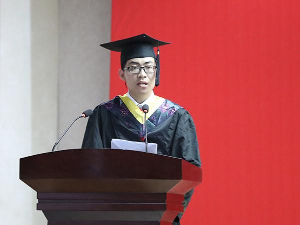 毕业生代表赵鸿丹、谷建锋作大会发言,表达对轻院、老师、同学的感谢感激和珍重惜别,畅叙对未来人生的美好憧憬和热情向往。