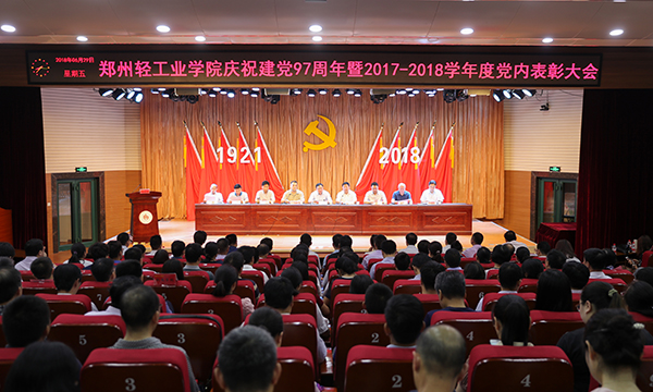 大会在庄严的《国歌》声中拉开帷幕。党委副书记尚宝平宣读了中共河南省委高校工委、河南省教育厅《关于表彰全省高等学校优秀共产党员、优秀党务工作者和先进基层党组织的决定》和中共郑州轻工业学院委员会《关于表彰2017-2018学年度先进基层党组织、优秀共产党员、优秀党务工作者的决定》。校领导向受表彰的先进集体和优秀个人代表颁发了奖牌和荣誉证书。河南省高校优秀共产党员、机电工程学院教师李一浩,河南省高校优秀党务工作者、计算机与通信工程学院本科生第二党支部书记司丽娜,物理与电子工程学院党总支书记朱晓东,材料与化学工程学院环境工程和化工原理教学中心党支部书记蔡立芳,马克思主义学院教师杨晓,电气信息工程学院党总支委员、行政党支部书记耿盛涛作为受表彰的先进集体和优秀个人作了交流发言。
