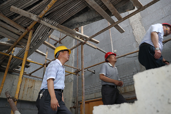 暑假期间,天气炎热,持续高温,学校各基本设施建设工地上机器轰鸣,各项工程紧张有序进行;工地上的师傅们挥汗如雨,一丝不苟……这是我校暑假基本建设工作的真实写照。为了保障各项工程进展顺利,我校基建处的全体工作人员坚守一线,在高温酷暑里与工人师傅一道忙碌,用他们辛勤的汗水和高度的责任意识保障学校各项工程建设如期优质竣工。