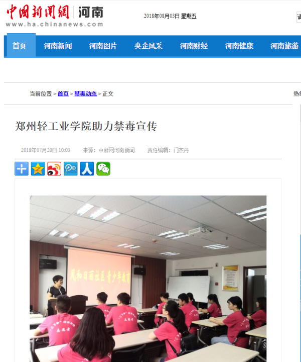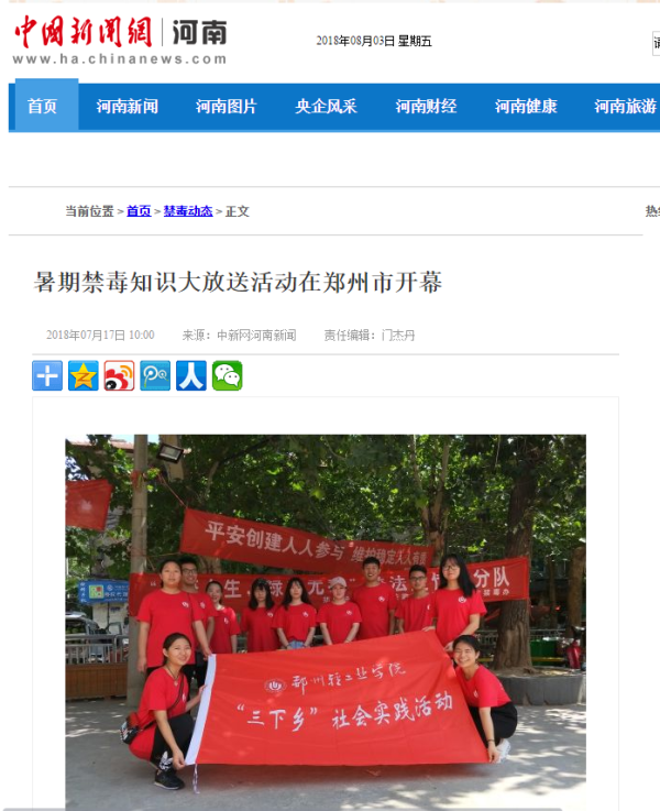 | 2.中国新闻网河南新闻:郑州轻工业学院助力禁毒宣传 | |||
